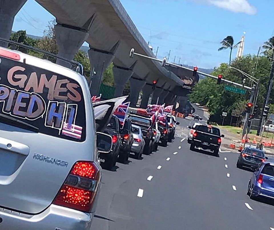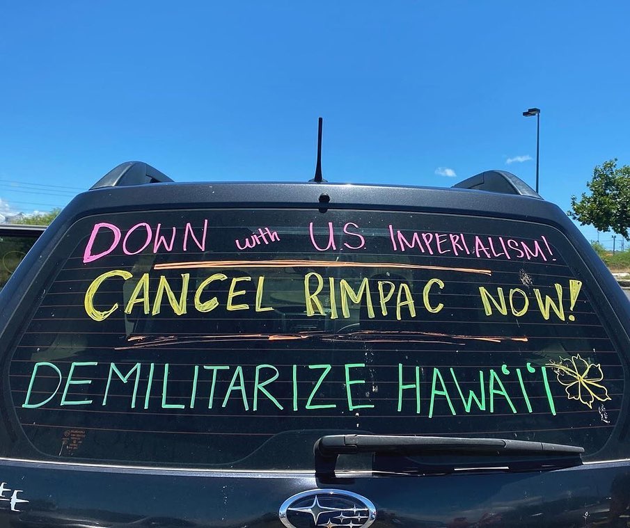 O’ahu showed up! 80+ vehicles joined our convoy from Sand Island to Pearl Harbor to Waikīkī, calling to #CANCELRIMPAC and demilitarize Hawai’i.