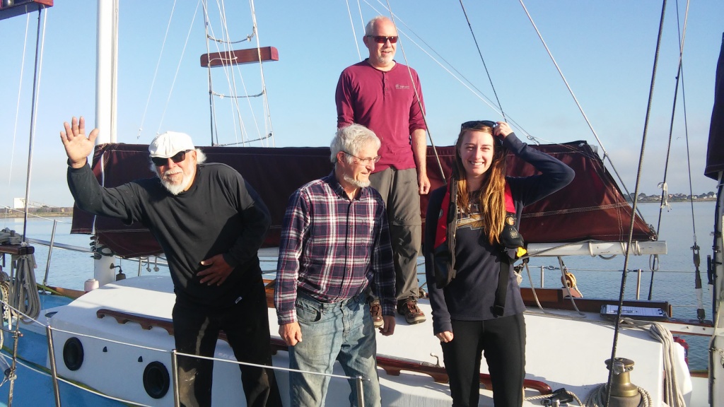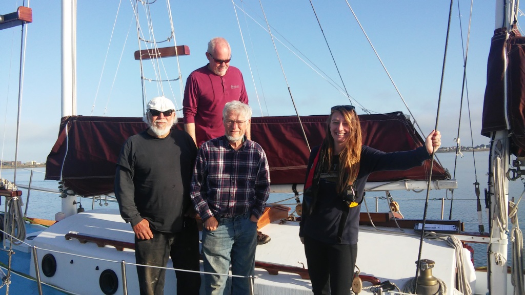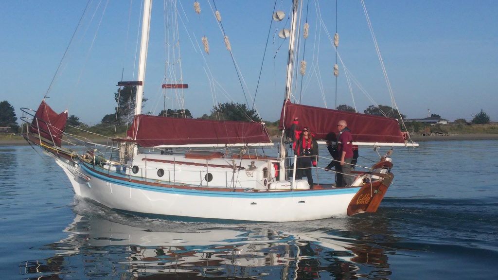 The crew for this first transit from Humboldt Bay to Portland are Captain Norman Petersen from Seattle, Kent Mitchell from Vancouver Washington, Victoria Sheldon from Eureka, and Michael Gonzalez from Trinidad.