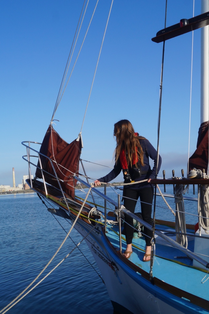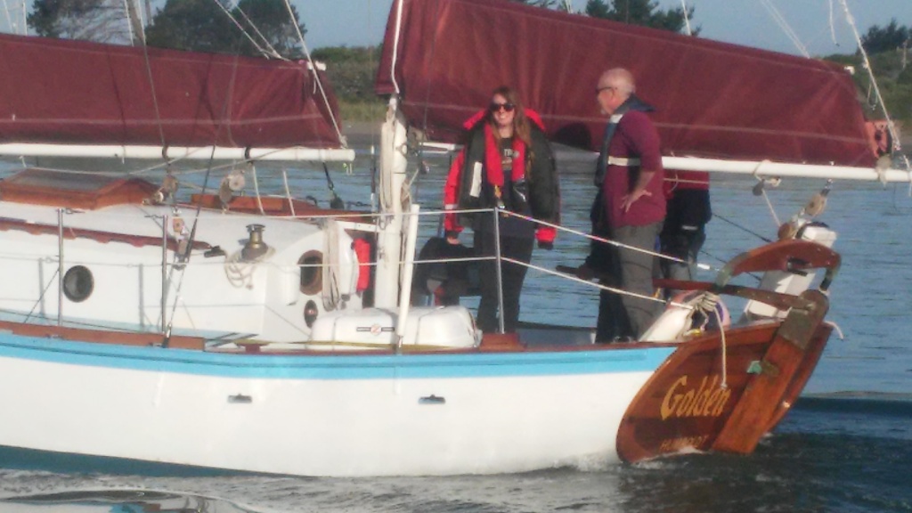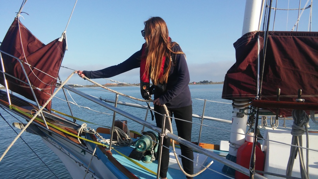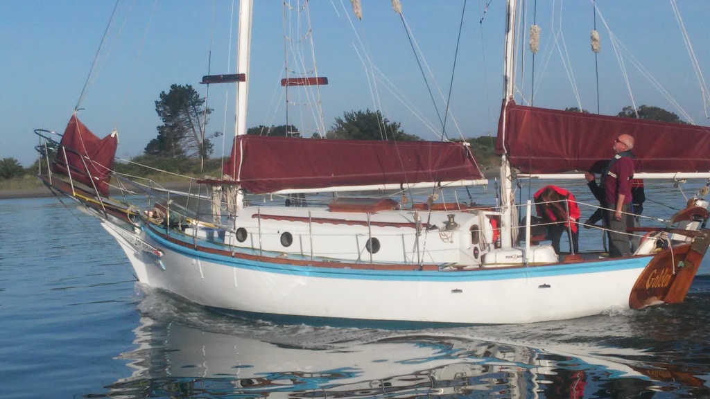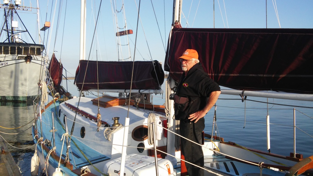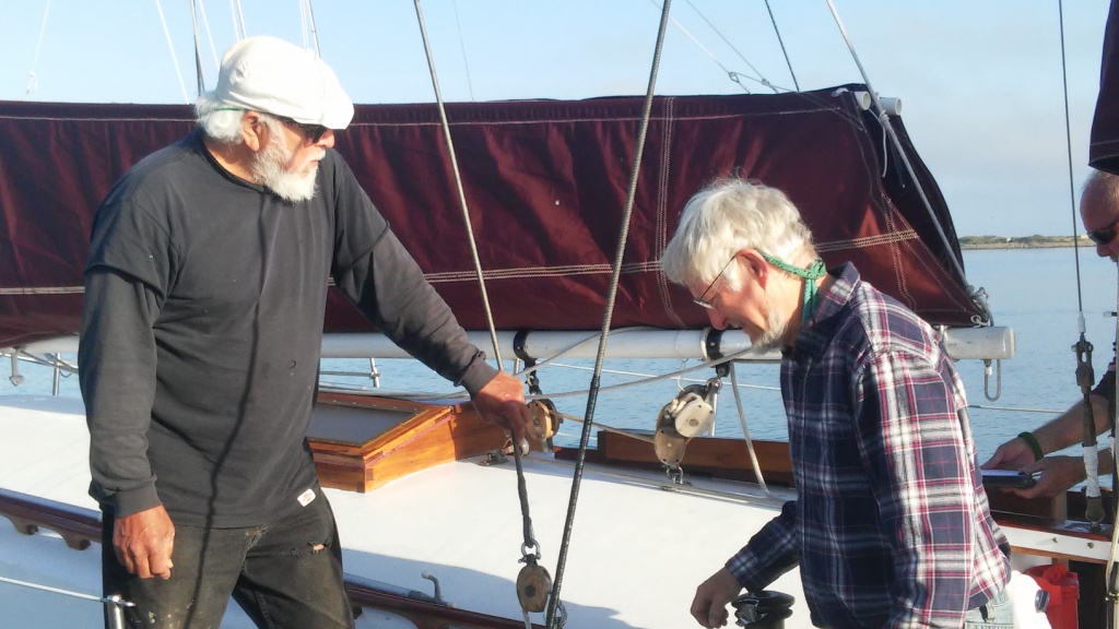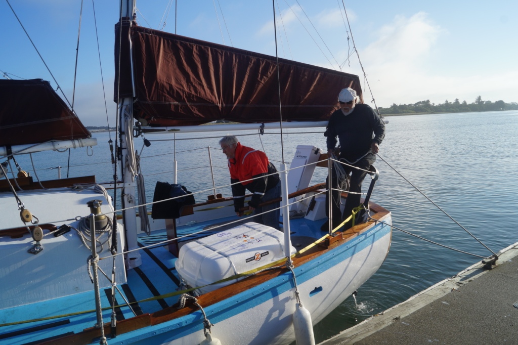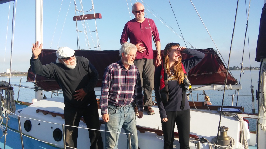 It was glassy-smooth at 7:30 am on Tuesday May 31 when the Golden Rule and her new crew cast off from the dock of the Eureka Public Marina. Several volunteers saw her off and the Ajax tug boat followed as she motored down the bay and out to sea.