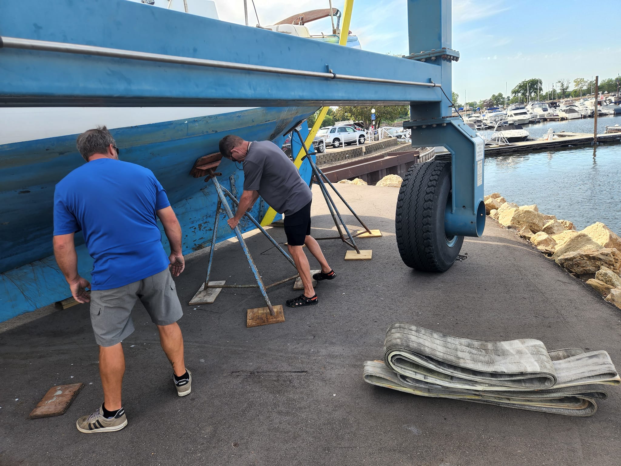Thank you, boat yard people, Collin and Justin for all of your help this morning!!